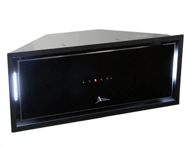 هود اخوان مدل H220 مخفی این محصول با نمای شیشه ای و دارای موتور با مکش قوی 700 مترمکعب در ساعت، با بدنه فلزی و پروانه فلزی است. این هود درب بازشو شیشه ای دارد که همراه با جک گازی باز و بسته میشود و مجهز به ریموت کنترل لمسی است. فیلتر آلمینیومی چند لایه با قابلیت جذب بالای چربی و دود و همچنین قابل شستشو در ماشین ظرفشویی می باشد. پنل تنظیمات هود به صورت کلید لمسی بوده و همچنین ریموت کنترل را نیز در کنار این هود خواهید داشت.
